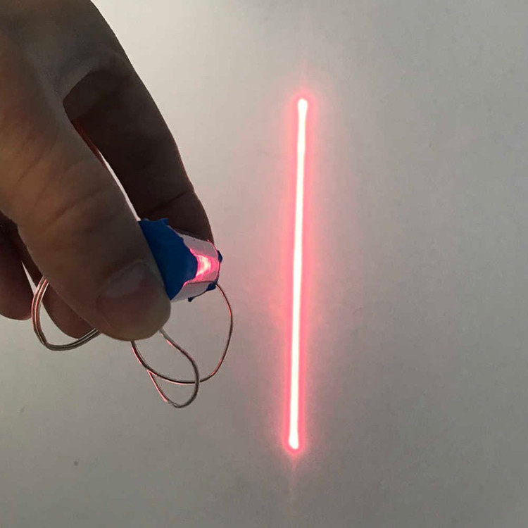 نور لیزر به رنگ قرمز و با نماد - نمایش داده میشود یعنی یک خط تیره توان لیزر 5 میلی وات و منبع تغذیه آن 3 ولت مستقیم می باشد