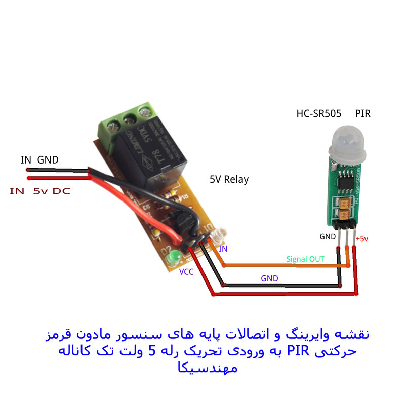 سیم فلت مادگی به مادگی 3 عدد ماژول رله تک کاناله 5 ولت DC یکعدد سنسور مادون قرمز پسیو یکعدد
