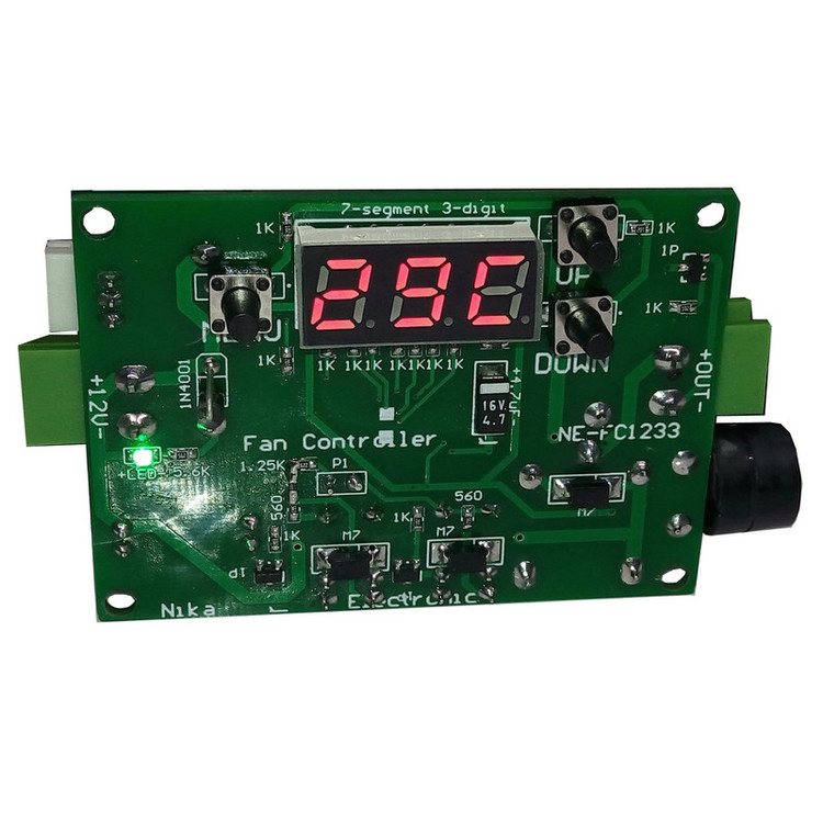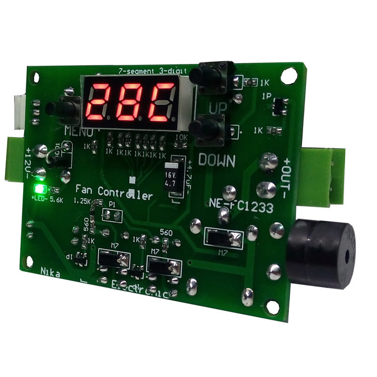 نمایش دمای محیط دارای آلارم صوتی با قابلیت فعال سازی دارای 4 سطح ولتاژی برای کنترل سرعت فن