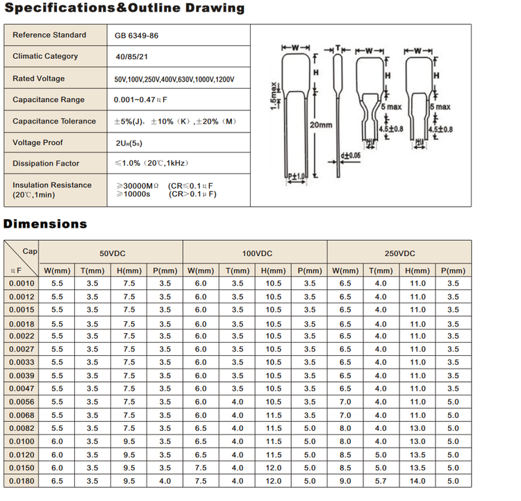 خازن ظرفیت 4.7 نامو فاراد و با ولتاژ 100 ولت و 10درصد خطا می باشد. جنس ماده دی الکتریک پلی استر بوده و تحمل دمایی بالایی دارد به طوریکه از 40- تا 105+ درجه را تحمل میکند. در خازن فیلم پلی استر 4.7NF/100V فاصله سرب 27 میلیمتر بوده طول خازن 5.3 میلی متر و عرض آن 2.8 میلی متر و فاصله دو پایه 5 میلی متر و ارتفاع خازن 9 میلیمتر است.