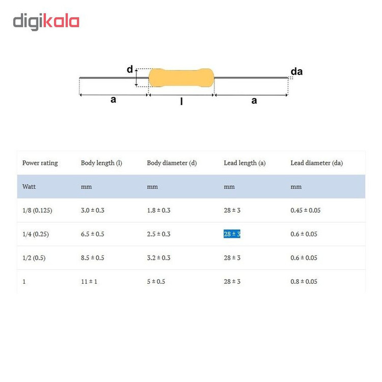 توان 1/4 وات تلورانس 5% نوع مقاومت کربنی